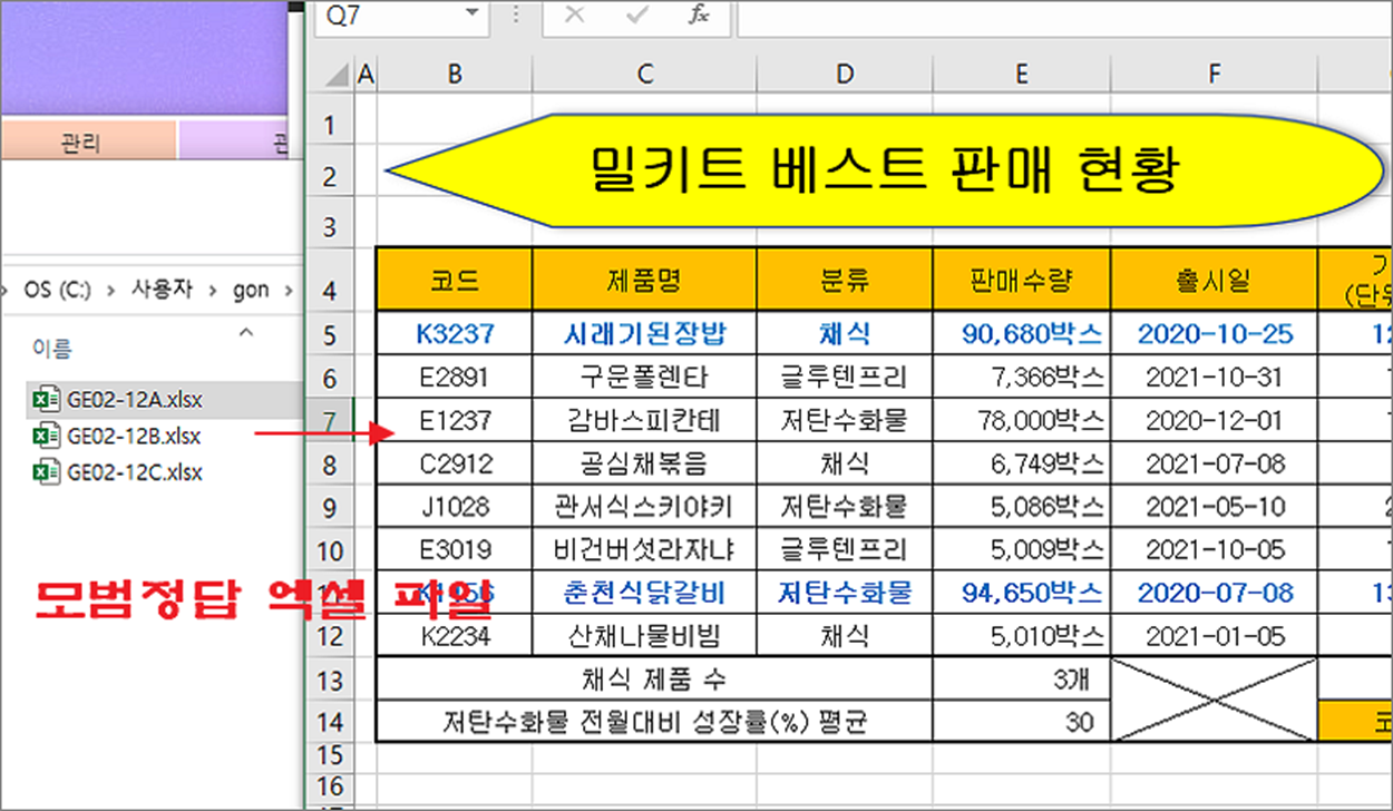 ▼ 정답 파일은 문제에 쓰인 샘플 내용과 함께 들어간 엑셀 파일입니다. 위에서 본 기출문제 PDF 당 하나씩 입니다.