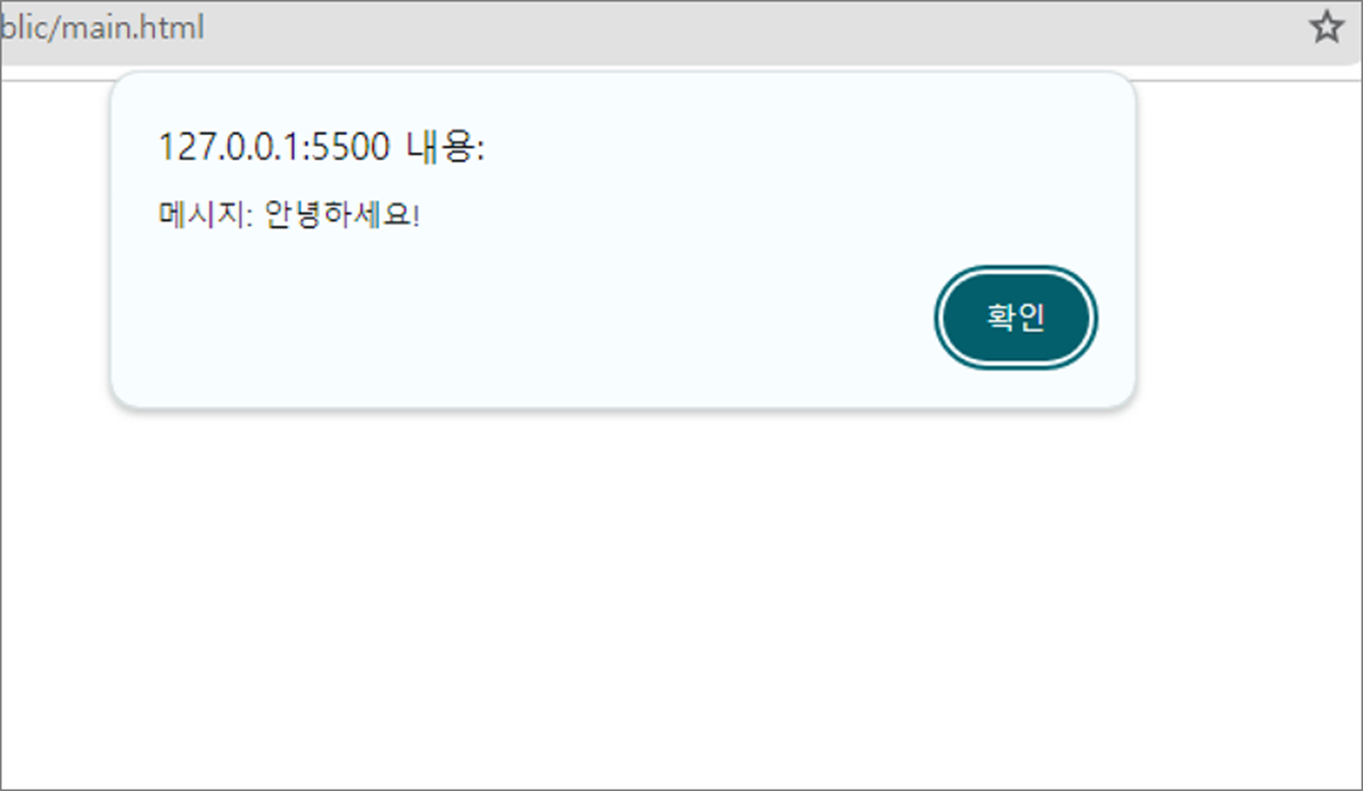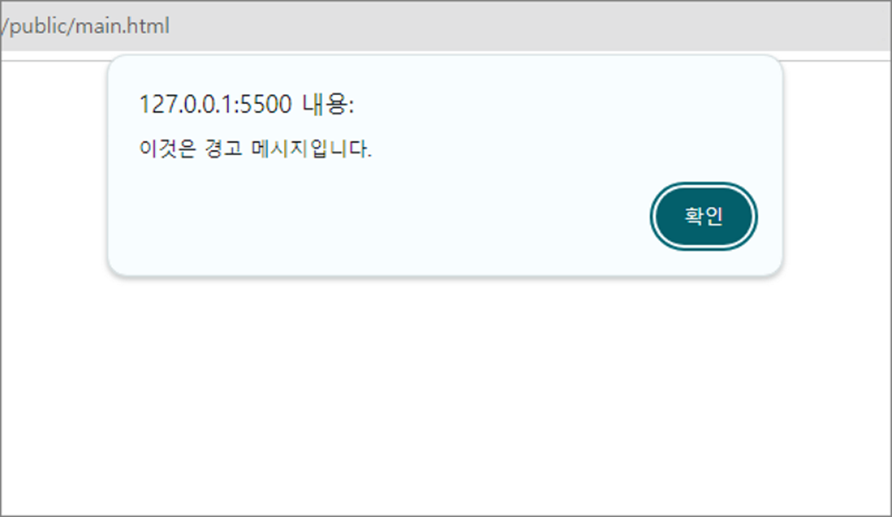 “alert()” 함수를 사용하여 경고 메시지 창을 표시합니다. 사용자가 확인 버튼을 클릭하기 전까지 스크립트 실행이 일시 중지됩니다.