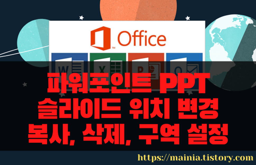 | ※ 아래는 참고하면 좋을 만한 글들의 링크를 모아둔 것입니다. ※ ▶ 파워포인트(PowerPoint) 슬라이드 방향 가로 세로 바꾸는 방법 ▶ 파워포인트 PPT 여러 슬라이드 구역 나누기 ▶ 파워포인트 PPT 제목 슬라이드가 아닌 빈 화면 시작으로 설정하기 ▶ 파워포인트 PPT 슬라이드 노트 편집하기 ▶ 파워포인트 PPT 슬라이드 페이지 번호, 쪽 번호 삽입, 변경하는 방법 |
