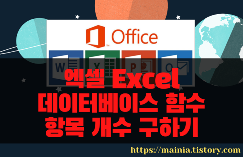 데이터베이스 함수들은 단어 앞에 D 가 붙어 있습니다. D 는 Database 의 약자입니다. 이런 함수들은 일정한 패턴과 특징이 있습니다. 첫 번째 필드에 범위를 넣고 두 번째 필드에 열 번호를 넣습니다. 세 번째는 값을 걸러내기 위한 조건인데 특이하게 따로 조건 필드를 만들어서 지정합니다. D 가 붙은 데이터베이스 함수들의 사용법은 같기 때문에 하나만 숙지해 두면 다른 함수들을 사용하는데 어려움이 없습니다. 이번에는 항목의 개수를 구하는 DCOUNT 함수를 알아 보겠습니다.