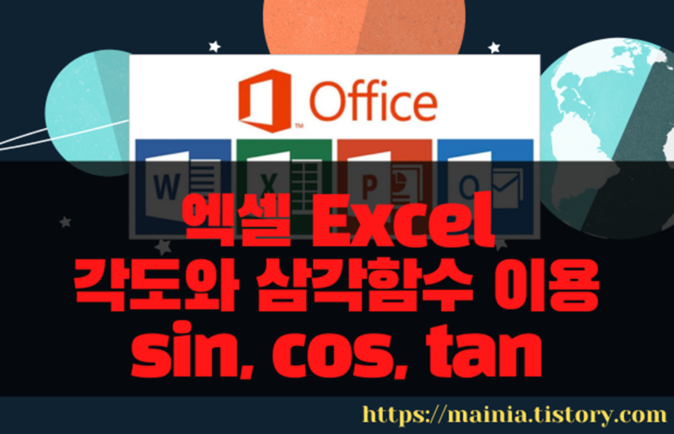 수학을 공부하다 보면 삼각함수가 나옵니다. 직각삼각형 세 변과 각에 대한 관계를 나타낸 것이 삼각함수 입니다. 주로 3가지 함수 sin, cos, tan 를 구하는 방법에 대해 공부합니다. 엑셀에도 각도만 주어지면 sin, cos, tan 을 구할 수 있는 함수를 제공합니다. 그러기 위해서는 각도 값을 라디안으로 변환해야 합니다. RADIANS 은 각에서 라디안으로 변환합니다. 반대로 DEGRESS 은 라디안에서 각으로 변환합니다.