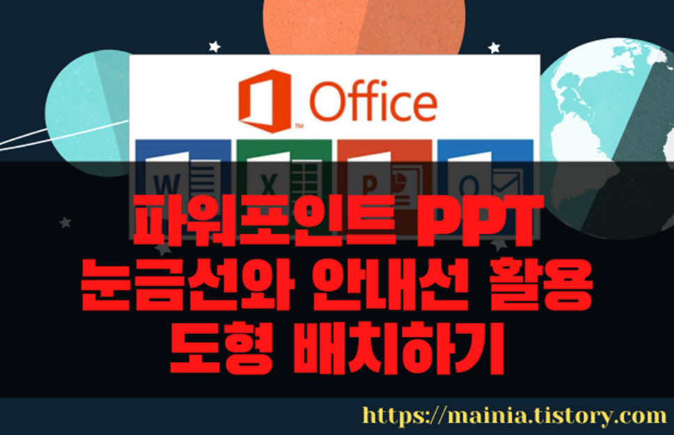 도형과 이미지, 다양한 오브젝트들은 슬라이드에서 자신이 원하는 위치에 배치할 수 있는 개체들입니다. 하나가 아닌 여러 개의 개체들을 정확한 위치에 가져다 놓거나 정렬하기 위해서는 눈금선과 안내선, 눈금자를 이용하는 것이 좋습니다. 모눈종이처럼 슬라이드 전체를 눈금으로 나누거나 적당한 위치에 안내선을 추가해서 도형을 배치하는 것입니다.