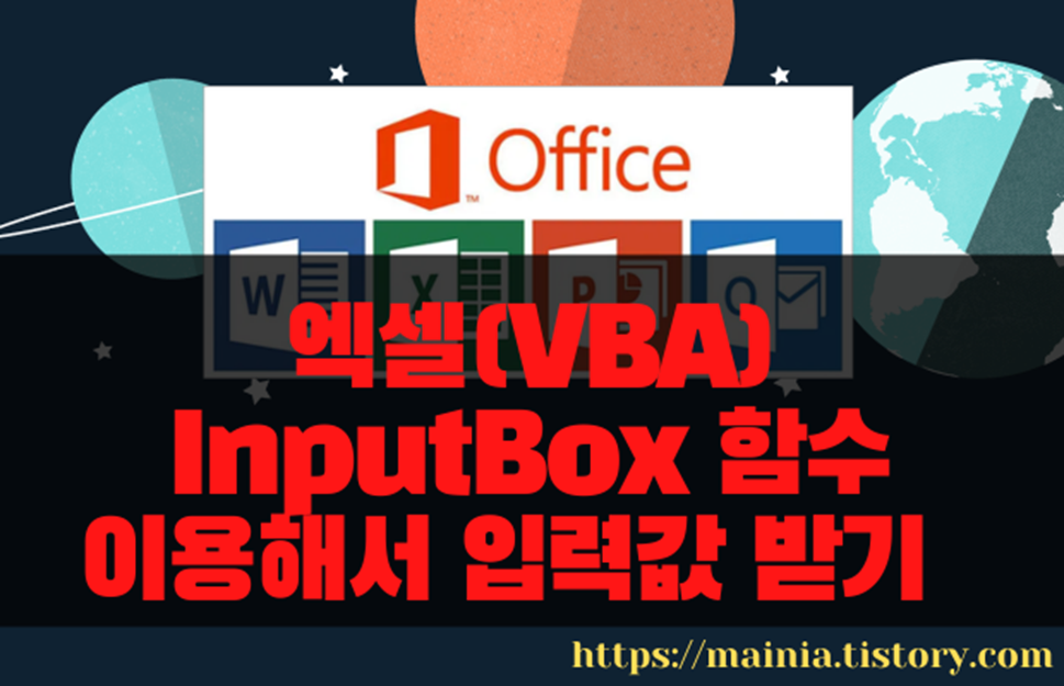 | 변수 = InputBox(Prompt, Title, Default, Left, Top, HelpFile, HelpContextID, Type) |