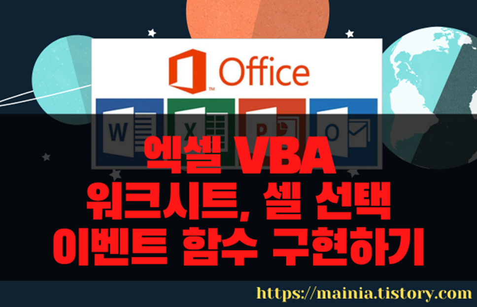 | ※ 아래는 참고하면 좋을 만한 글들의 링크를 모아둔 것입니다. ※ ▶ 엑셀 VBA 통합 문서 문서가 열리는 순간 기능 구현하기 ▶ 엑셀 VBA 시트 더블클릭 이벤트로 셀에 배경색 변경하기 ▶ 엑셀 VBA 영역을 선택했을 때 이벤트 처리하기 ▶ 엑셀 VBA 개체, 속성, 함수, 이벤트 사용법과 사례 검색해서 참고하기 ▶ 엑셀 VBA 매크로 소스 주석 Comments 넣는 방법 |