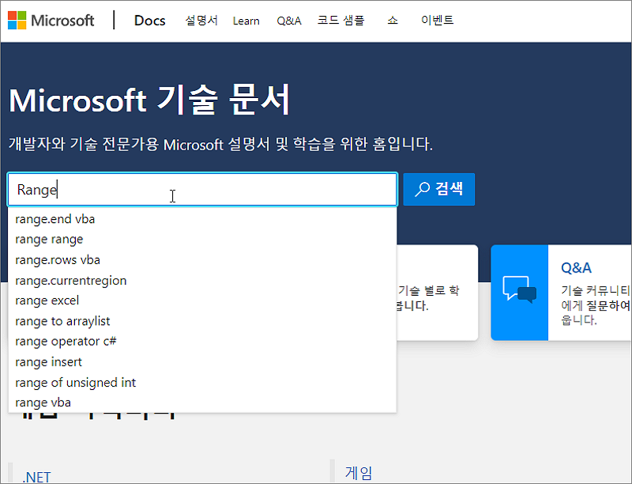 ▼ 윈도우에 기본으로 등록된 웹 브라우저가 뜨고 마이크로소프트 기술 문서에서 검색 결과를 보여 줍니다. 이렇게 단축키 클릭 한번으로 관련 정보를 찾아 활용할 수 있습니다.