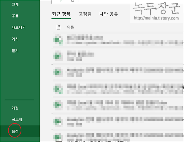 ▼ 엑셀의 파일 탭 > 옵션 메뉴를 선택합니다.