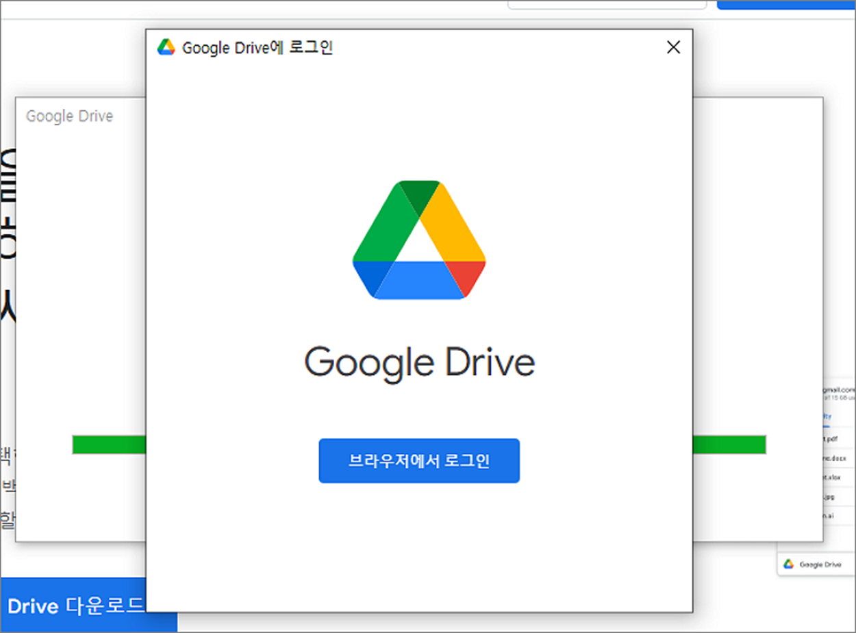 ▼ 드라이브 앱 설치가 끝나면 다시 한번 더 계정 로그인을 요구합니다. “브라우저에서 로그인” 버튼을 눌러 계정 로그인 페이지로 이동합니다.
