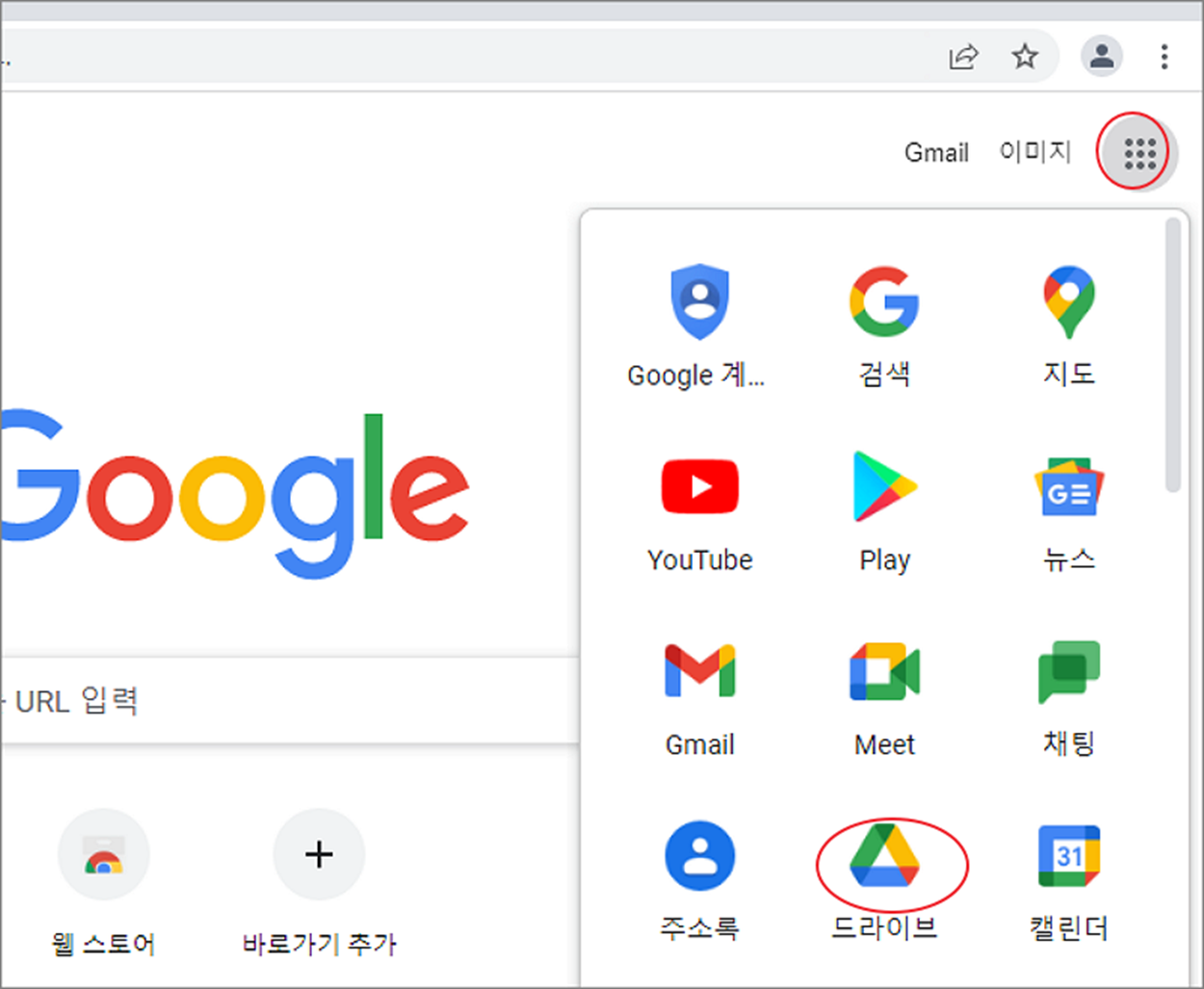 ▼ 동기화 폴더를 설정하기 위해서는 구글 드라이브 PC 버전 앱을 설치해야 합니다. 먼저 구글 계정으로 로그인 하지 않은 경우를 설명하겠습니다. 더보기 > 드라이브 제품을 클릭합니다.