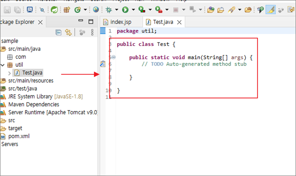 자바로 구현된 프로그램의 시작 지점은 main 입니다. 테스트 코드를 만들고 싶은데, main 함수의 구조가 생각나지 않는 분들은 아래 방법을 이용해서 간단하게 main 함수를 만들 수 있습니다. 처음 이클립스로 자바코드를 컴파일하고 테스트하시는 분들을 위해 작성했습니다.