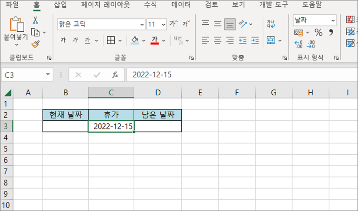 ▼ 아래 샘플은 현재를 기준으로 휴가날로부터 얼마나 남았는지 계산해 보기 위한 것입니다.
