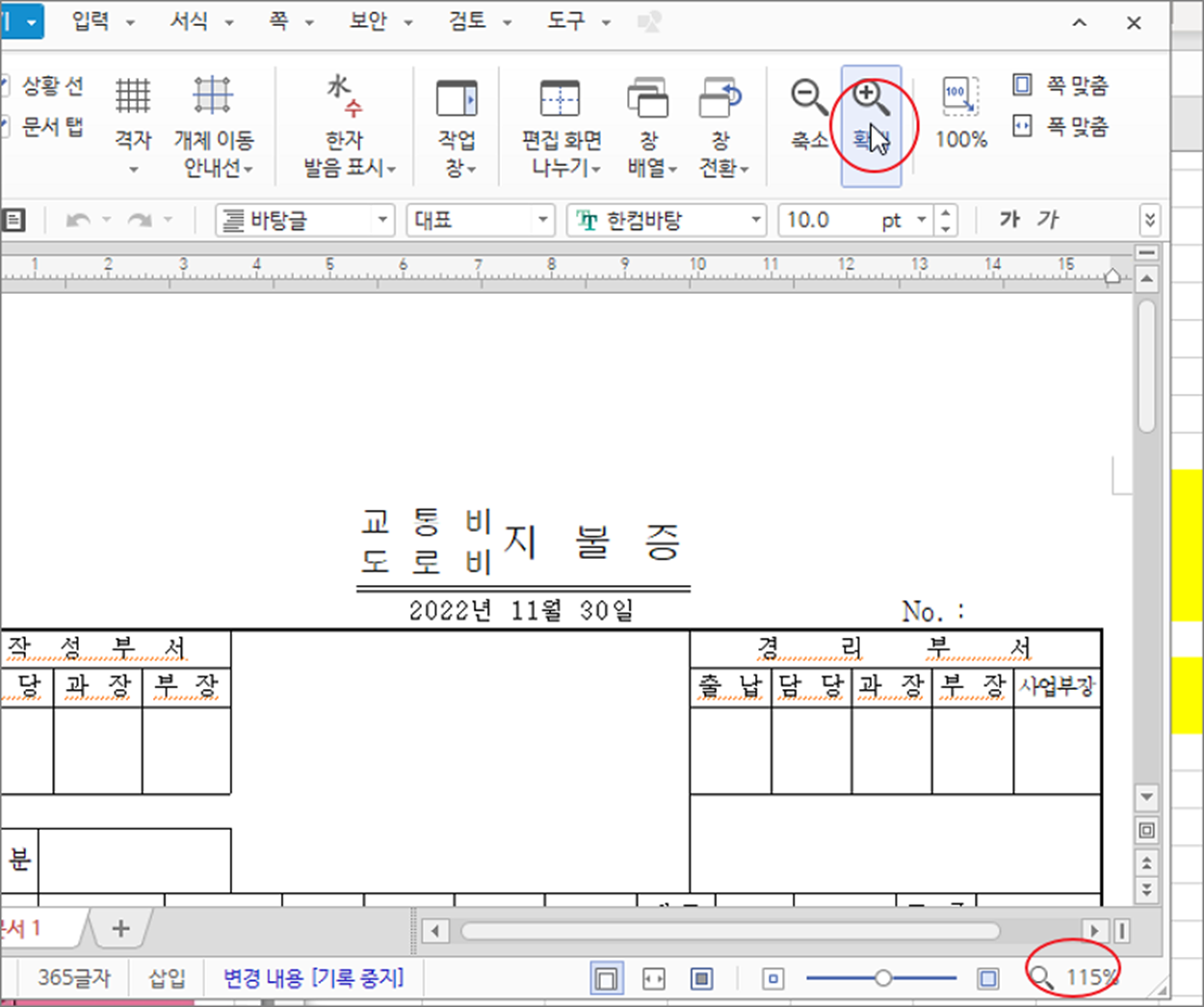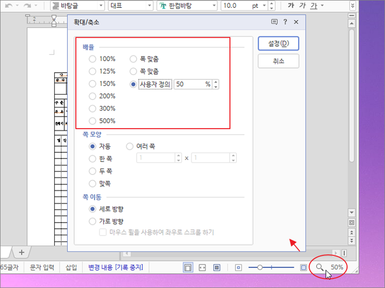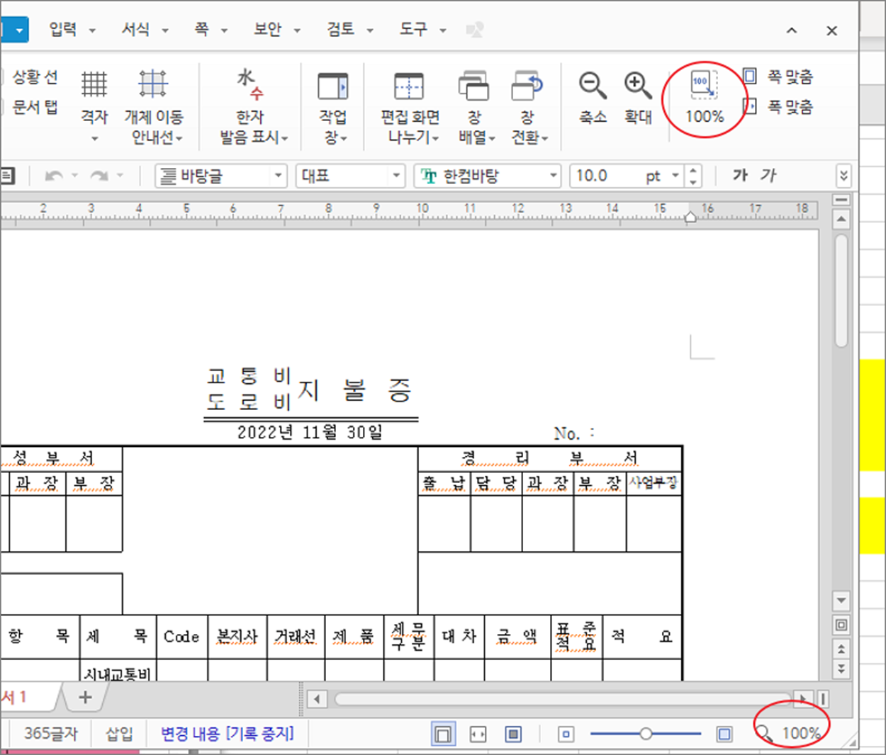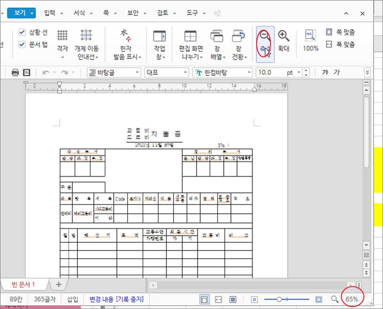 작은 모니터를 사용하거나 해상도가 낮은 컴퓨터인 경우 편집화면을 조금이라도 늘이고 싶을 겁니다. 반대로 해상도가 높아서 글꼴이나 편집화면을 확대하고 싶을 수도 있습니다. 이렇게 한글에서 편집화면을 상황에 맞추고 싶을 때 조절하는 기능들이 있습니다.