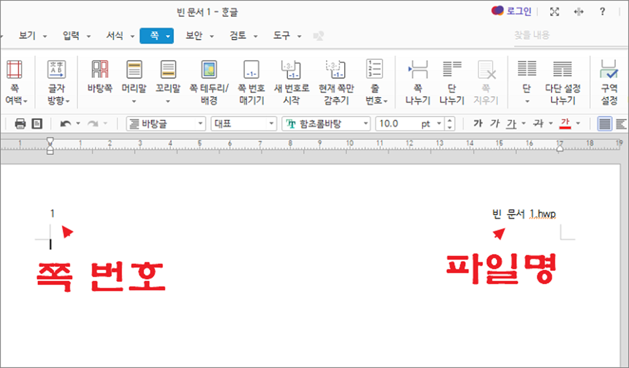 ▼ 그림은 오른쪽 여백에 쪽 번호를 추가한 결과입니다.