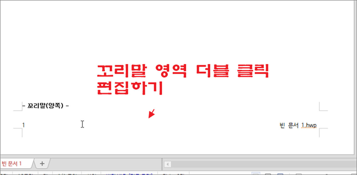 ▼ 머리말과 같이 꼬리말도 영역을 편집하고 싶다면 더블 클릭합니다. 그리고 상단에 편집 탭을 이용해서 수정합니다.