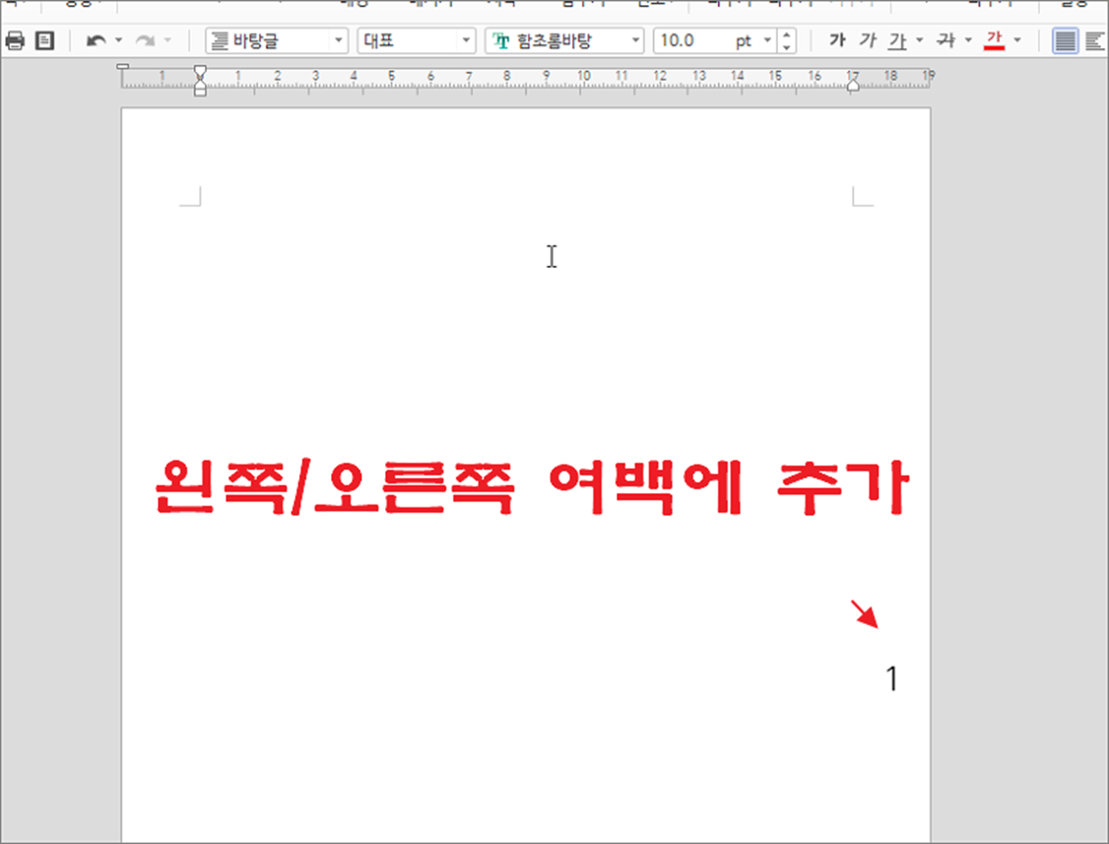 ▼ 두 번째 메뉴인 왼쪽/오른쪽 을 통해 상단 여백 뿐만 아니라 양쪽 사이드 여백에도 추가가 가능합니다. 하지만 쪽 번호만 가능합니다.