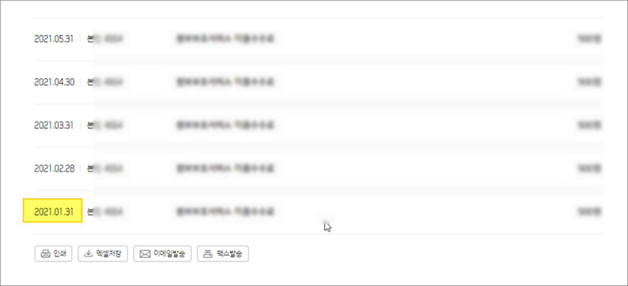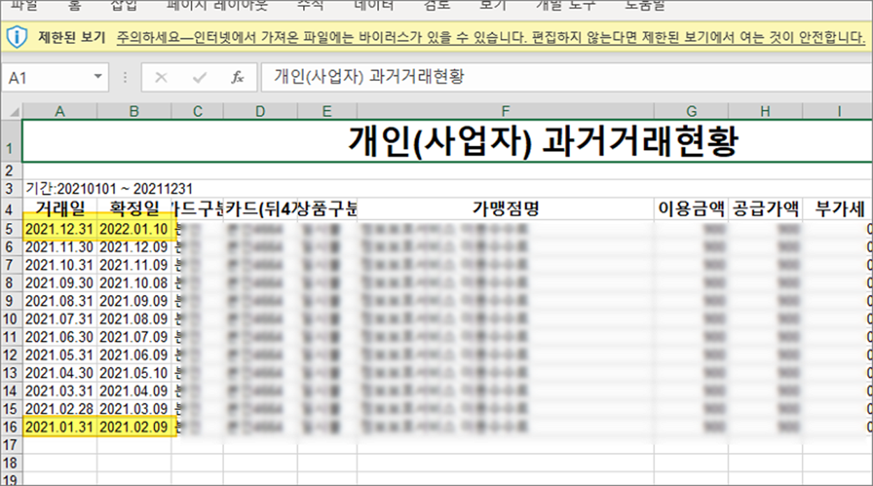 ▼ 다운받은 엑셀 파일을 열어 보겠습니다. 기간을 보시면 작년 1월부터 12월까지인 것을 확인할 수 있습니다.