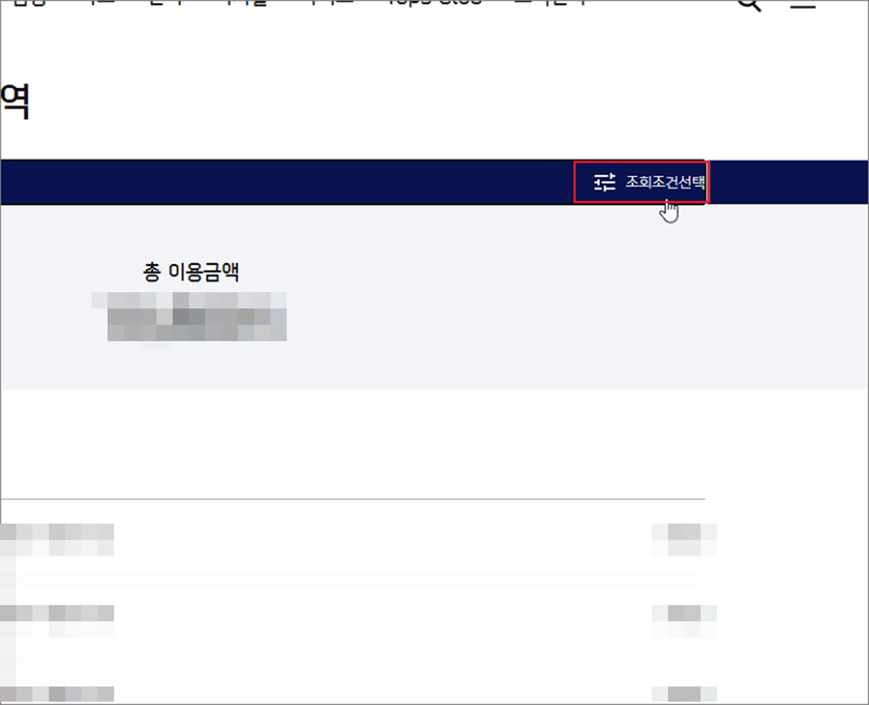 ▼ 또는 오른쪽 끝에 조회조건 선택 메뉴를 클릭해도 됩니다.