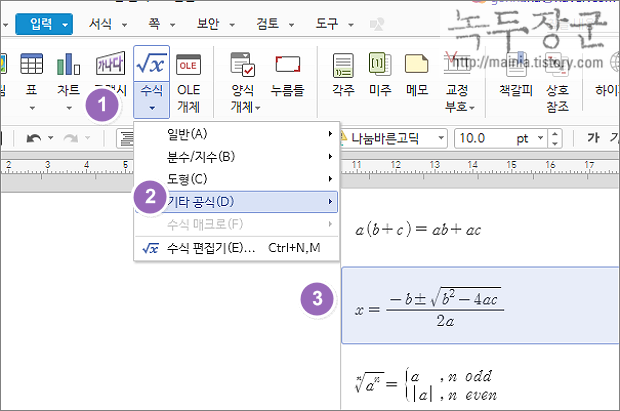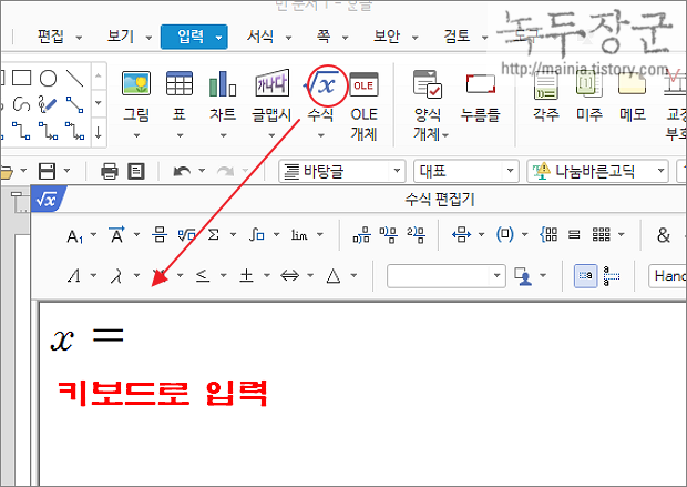 | ◎ 수식 입력기를 통해서 만들기 |