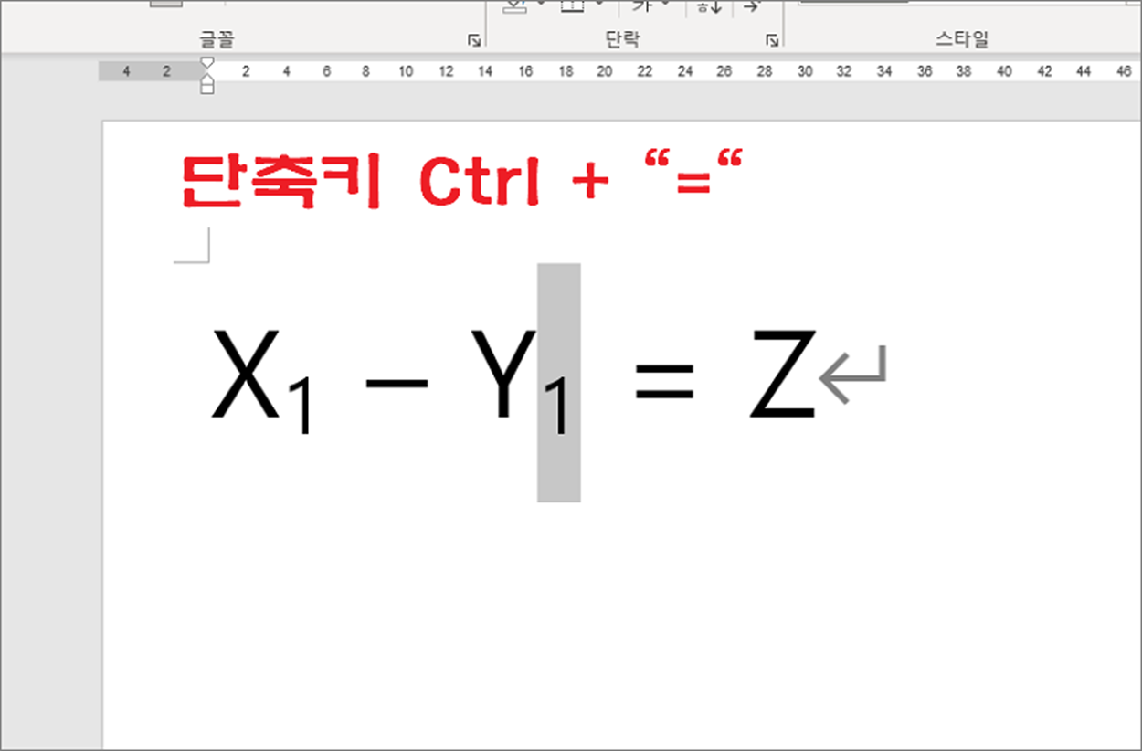 ▼ 아래 첨자의 단축키는 [Ctrl] + [=] 입니다. 이상으로 워드에서 위 첨자, 아래 첨자를 추가하는 방법에 대해 알아보았습니다.