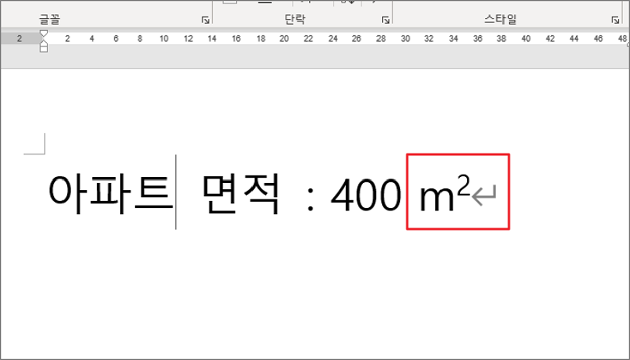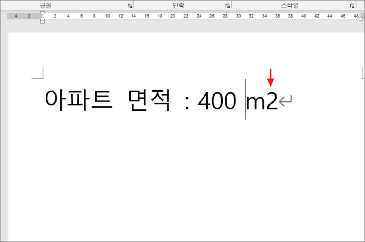 ▼ 아래 그림과 같이 면적을 나타내는 단위인 제곱미터는 m 에 위첨자 2를 붙여야 합니다. 먼저 m2 라고 적고 2 를 선택한 후 오른쪽 마우스를 클릭합니다.
