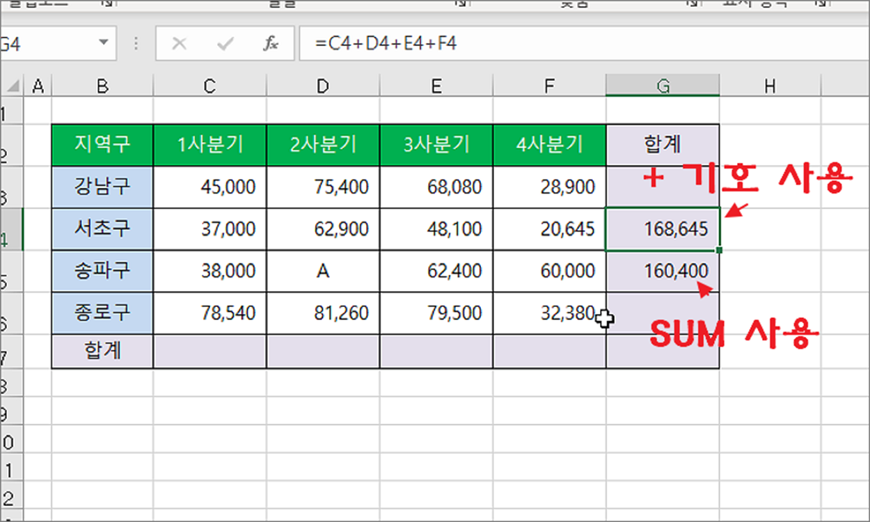 | ◎ 기호 (+) 와 SUM 함수의 차이 |