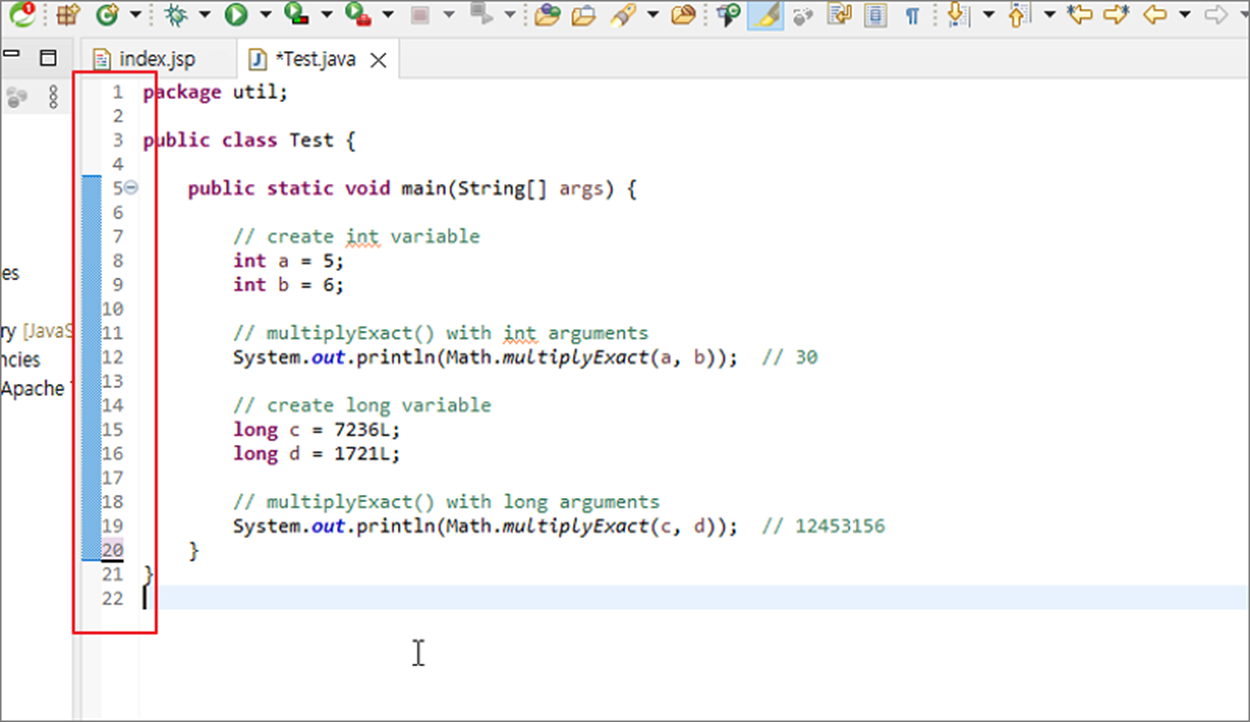 ▼ 에디터 창 왼쪽에 라인 번호가 없다면 옵션을 변경해야 합니다.