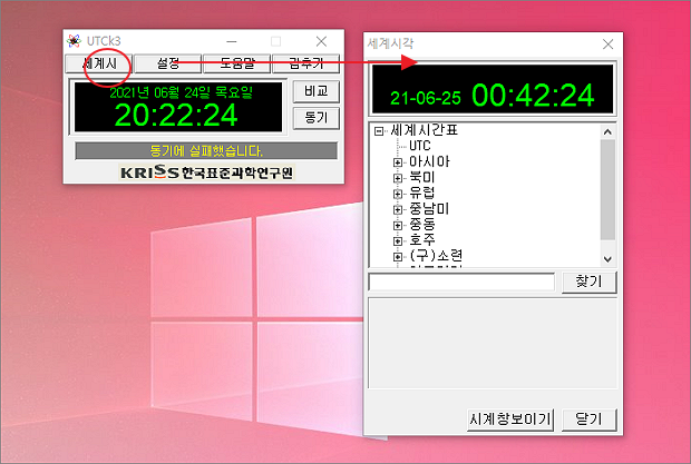 티켓을 구매하거나 초 단위로 일처리가 필요할 때 현재시간을 정확하게 볼 수 있어야 합니다. 컴퓨터의 윈도우 시계는 초단위 체크가 되지 않으며 조금씩 틀어지기 때문에 맞지 않습니다. KRISS 표준과학 연구소에서 배포하는 UTCK 를 설치해서 정확한 시간을 맞춰보겠습니다.