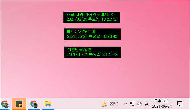 ▼ 그림처럼 여러 지역의 시간을 표시하는 창을 바탕화면에 추가했습니다.