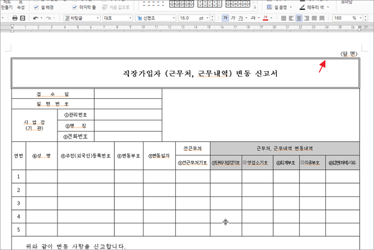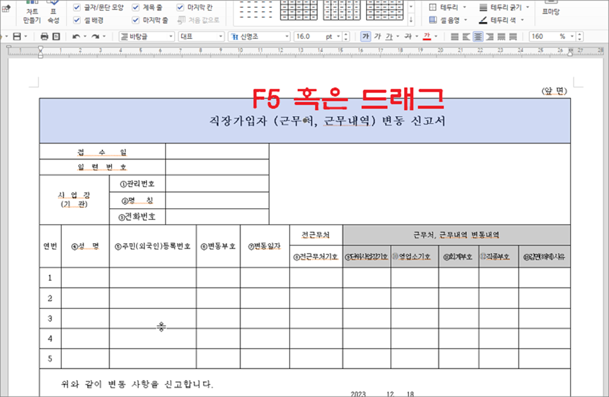 | ◎ 표 개별 라인 변경하기 |