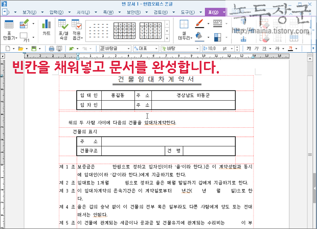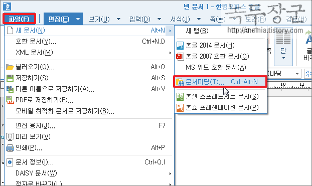 문서마당은 자주 사용하는 문서의 모양을 미리 만들어서 저장했다가 필요할 때 불러와서 문서를 완성할 때 사용하는 템플릿 기능입니다. 자신이 만든 표나 서식의 기본 틀을 만들고 저장했다가 문서 작성할 때 이용합니다. 작업 효율을 높일 수 있는 필수 기능입니다. 오늘은 한글에서 제공하는 문서마당의 서식파일을 이용한 문서 작성법을 알아보겠습니다.
