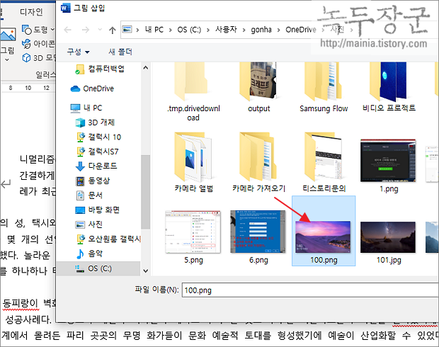 ▼ 그림 삽입 대화상자가 뜨면 추가할 이미지를 선택하고 확인 버튼을 클릭합니다.