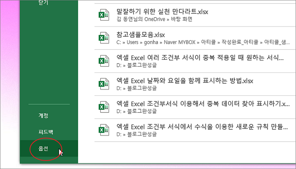 | ◎ 엑셀 최근 사용 문서 삭제 |