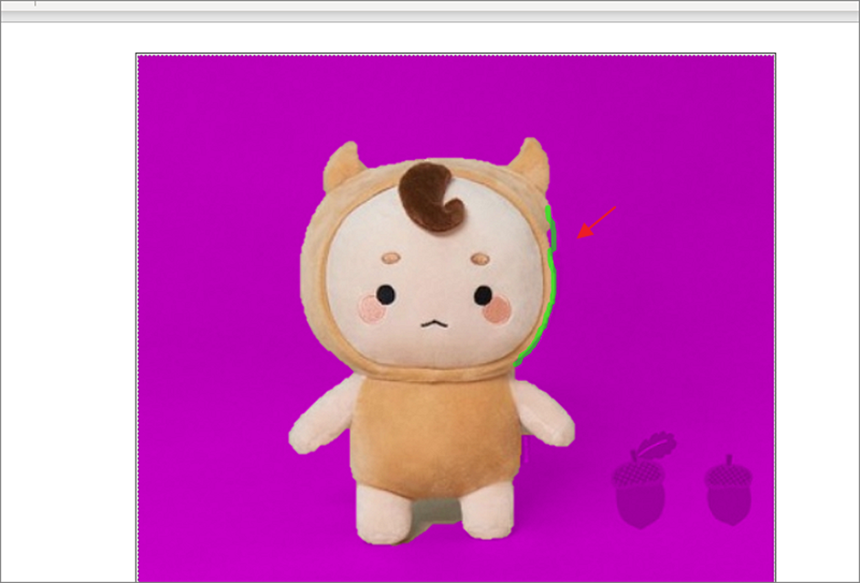 ▼ 제거하지 말아야 할 영역에서 보라색으로 표시가 되어 있는 부분을 확인합니다. 메뉴 목록에서 보관할 영역 표시 버튼을 눌러 기능을 활성화하고 펜 모양으로 바뀐 마우스 커서를 해당 부분에 클릭해서 보라색을 제거합니다.