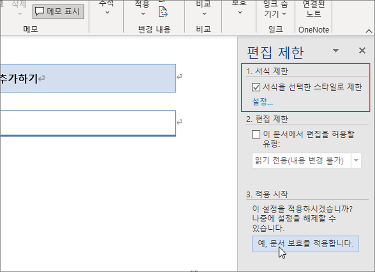 | ◎ 서식 편집 제한하기 |