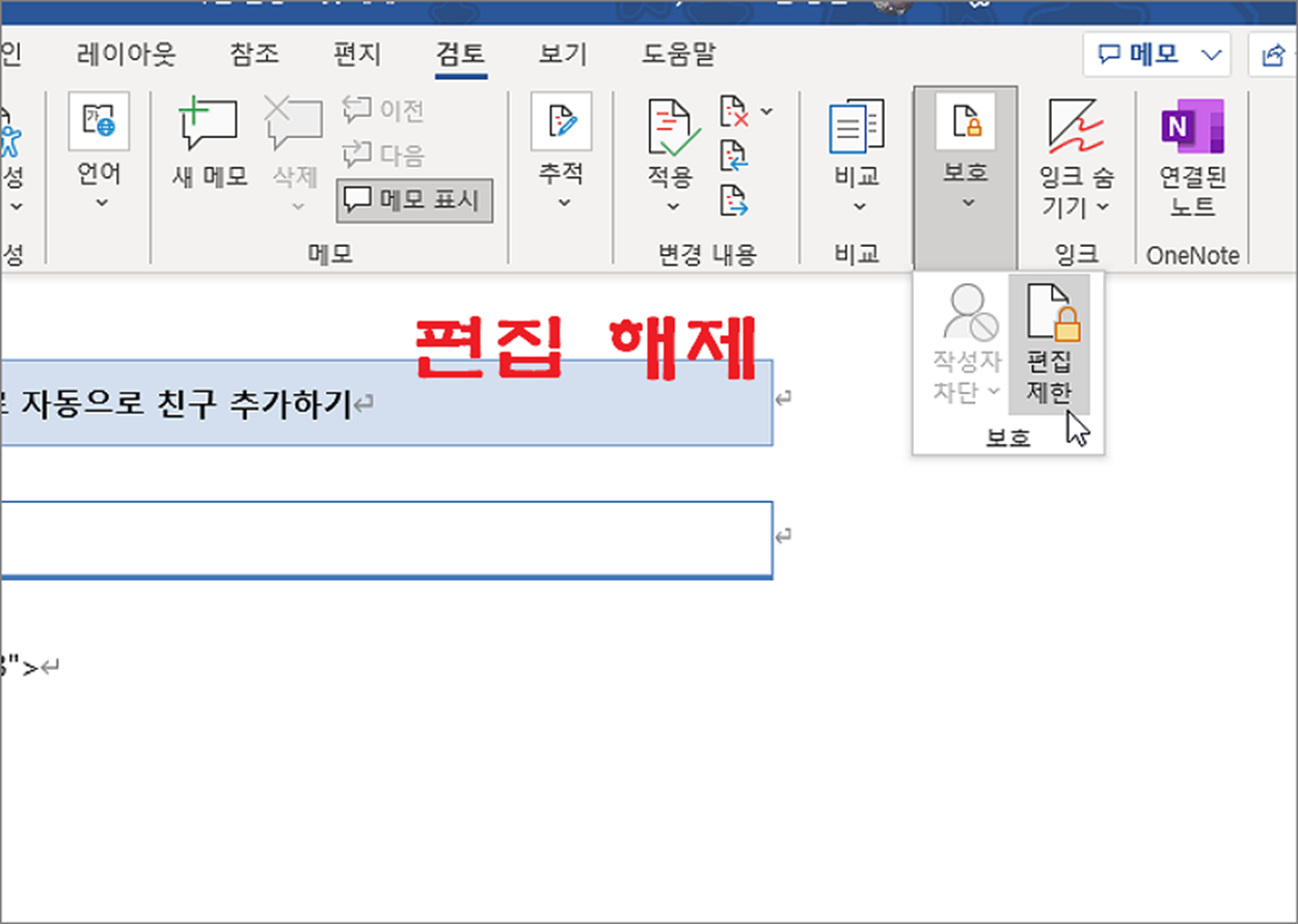 | ◎ 편집 제한 해제하기 |