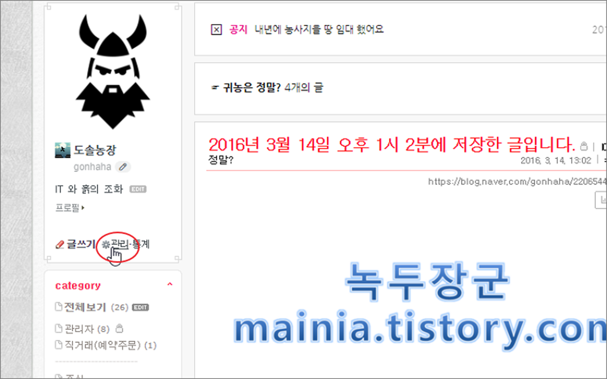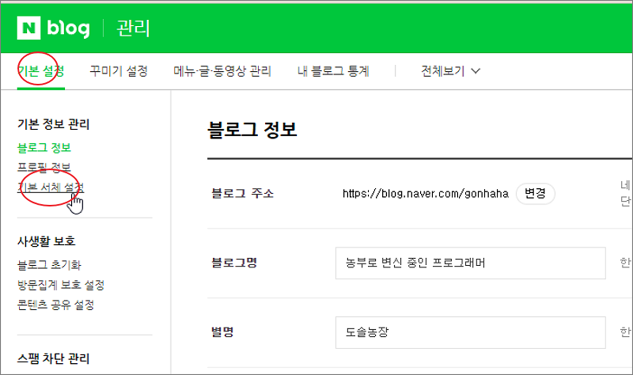 ▼ 네이버 계정으로 로그인하고 블로그 관리 페이지로 이동합니다. 보통 계정 정보 하단에 톱니바뀌 모양의 아이콘과 함께 관리 페이지로 이동할 수 있는 링크가 있습니다.