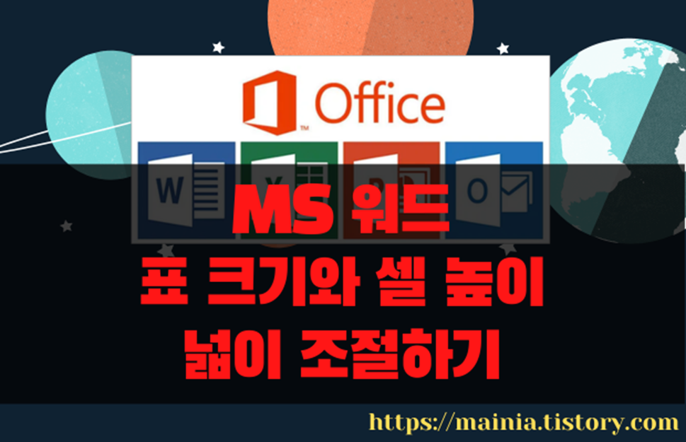 이번에는 표를 다루는 기본적인 내용인 크기 조절에 대해 알아보겠습니다. 표의 너비, 높이를 마우스로 끌어서 맞추거나 표 속성을 설정해서 맞추는 방법입니다. 아주 기본적인 내용이므로 워드에 익숙하신 분들은 넘어 가셔도 좋습니다.