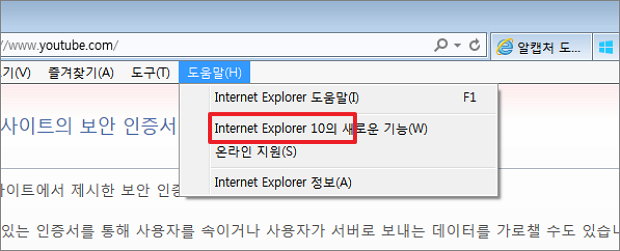 ▼ 하지만 매번 인증서 오류가 날 때 마다 사이트를 추가할 수는 없습니다. 엄청 귀찮은 일이죠. 만약 현재 사용하는 익스플로러가 10 이라면 11로 업그레이드 해줍니다. 그럼 바로 해결이 됩니다.