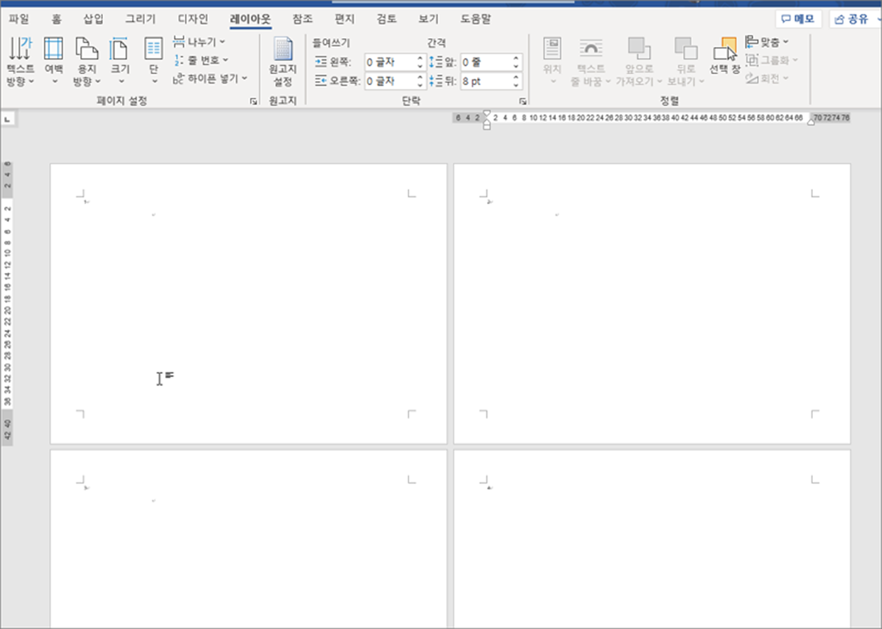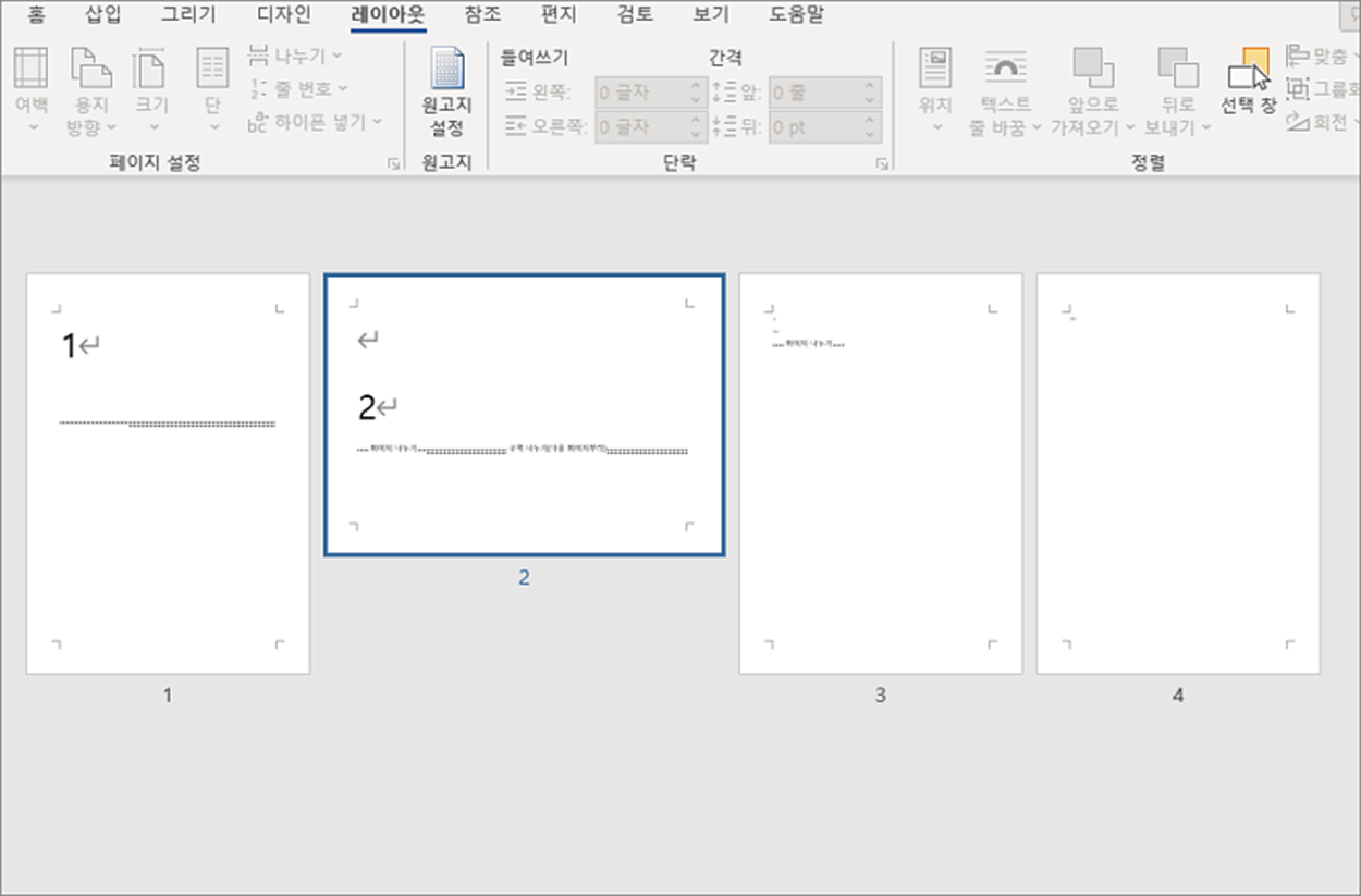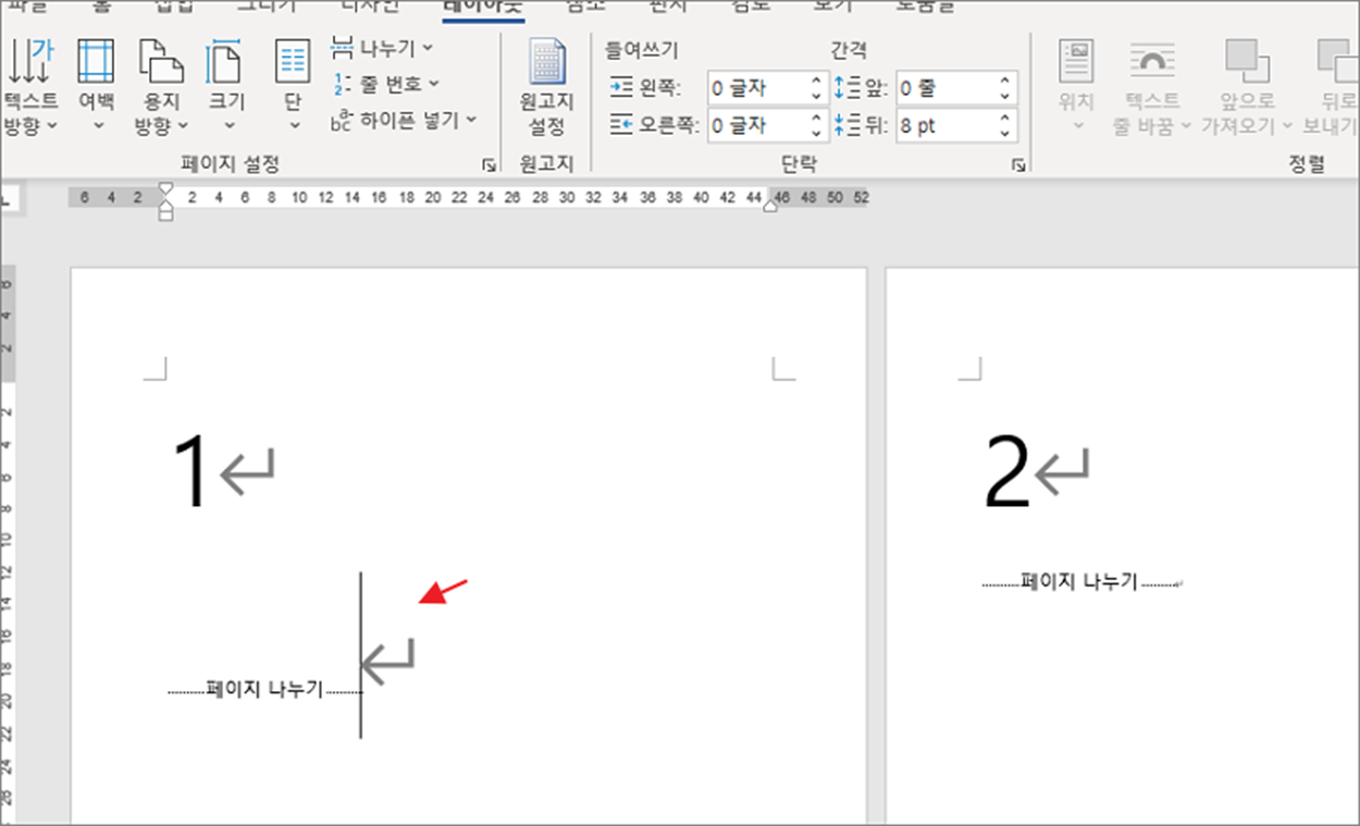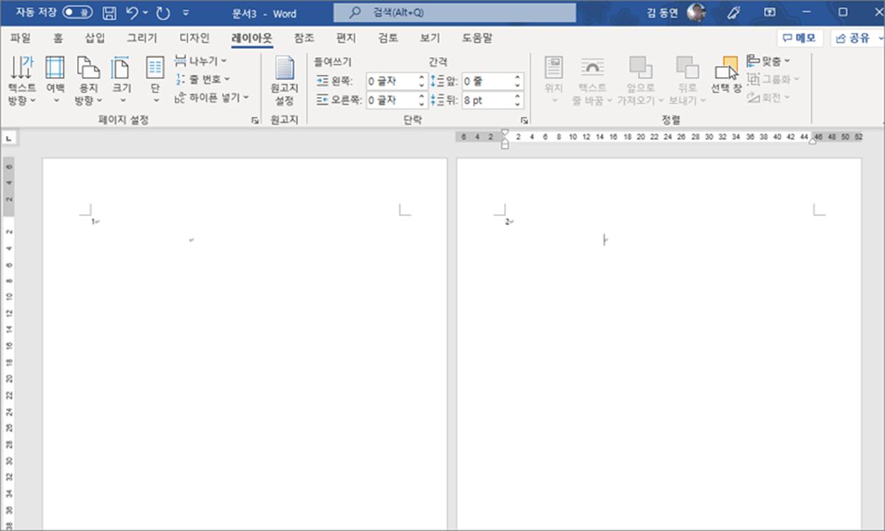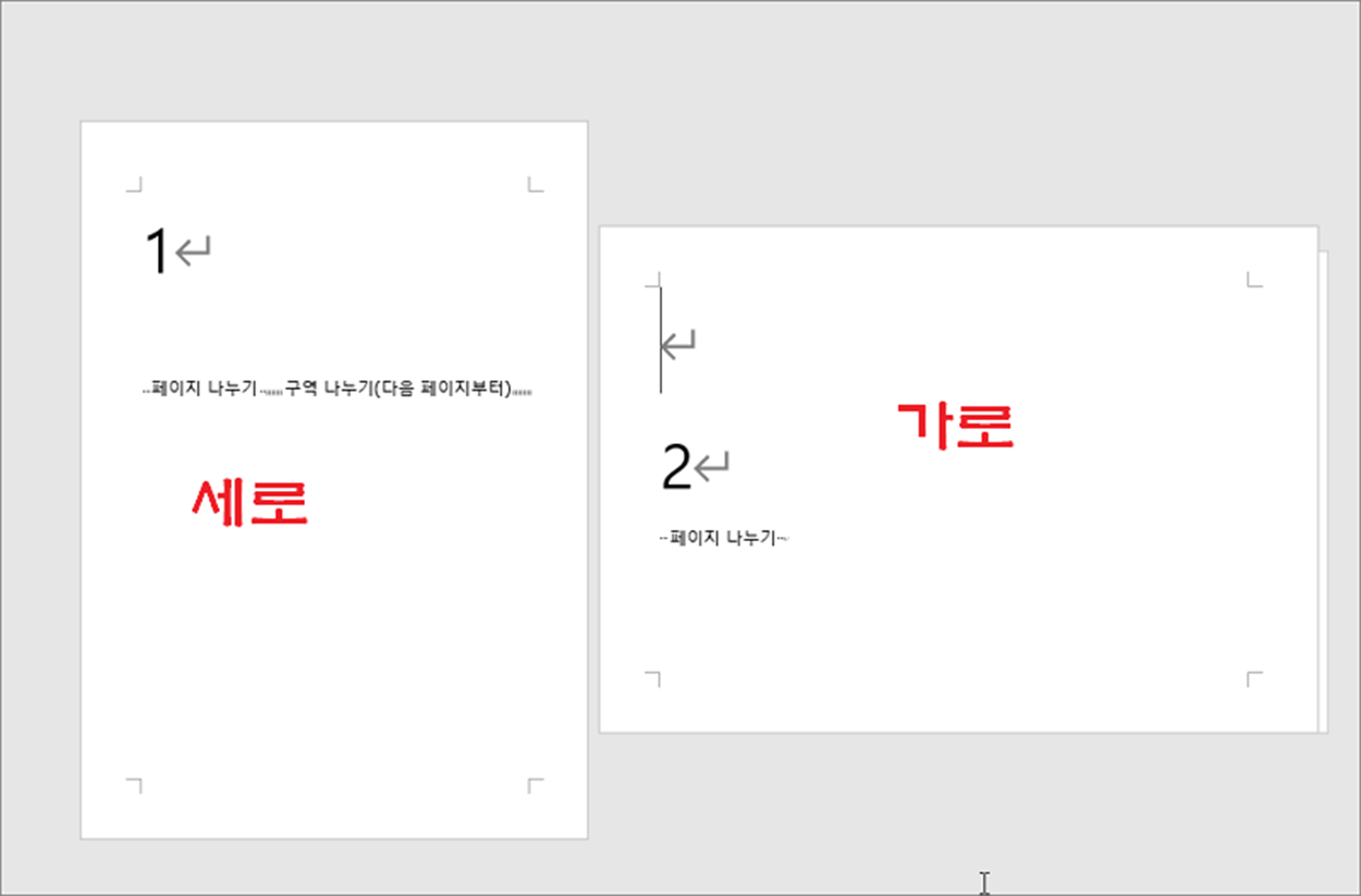 ▼ 기본 페이지 추가에서 용지 방향을 바꿔보겠습니다. 그림처럼 페이지 나누기로 2개 이상의 페이지를 문서에 추가했습니다.