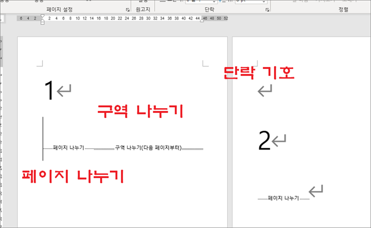 ▼ 구역 나누기 서식 기호가 보이는 것으로 봐서 제대로 적용된 것을 확인할 수 있습니다.