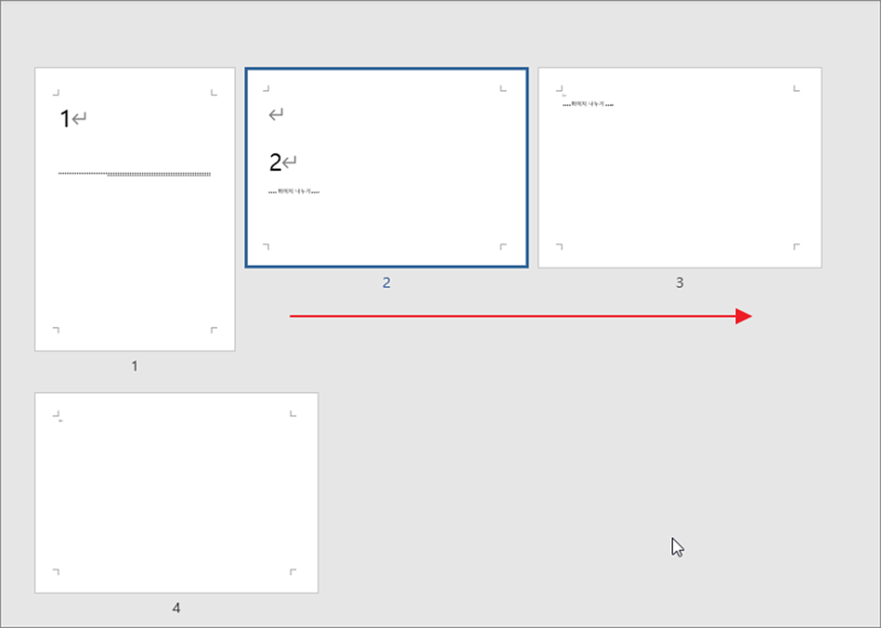 ▼ 하지만 2페이지 이후부터 모두 가로로 바뀐 것을 알 수 있습니다. 어떻게 해야 될까요? 2페이지만 가로로 적용하기 위해 다시 한번 더 3페이지부터 구역 나누기를 적용해야 합니다.