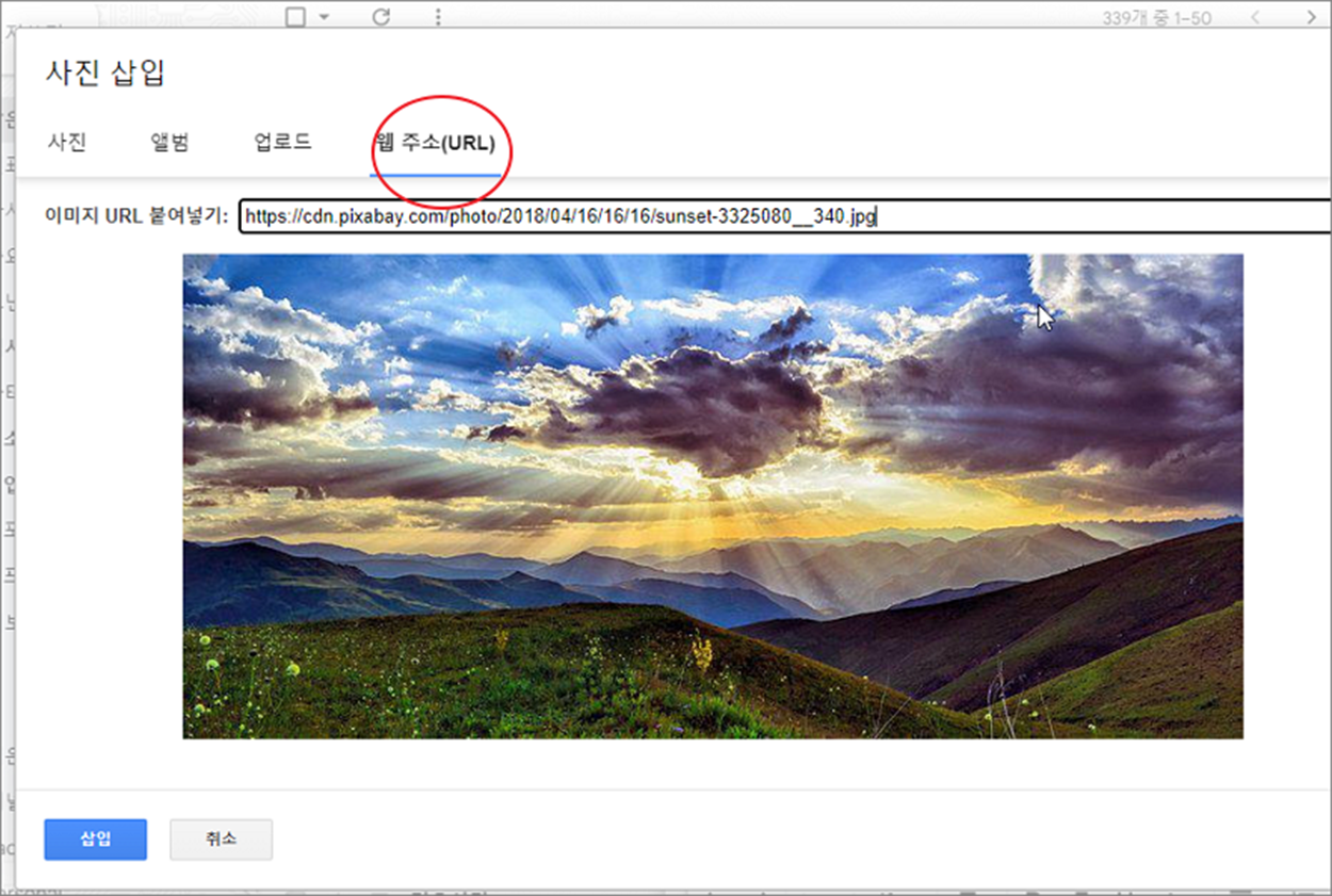 | ◎ 웹 주소(URL) 링크로 이미지 추가하기 |