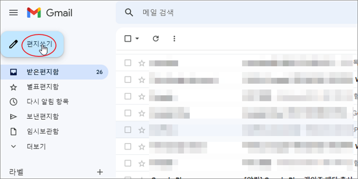 ▼ 우선 메일을 쓰기 위한 새 메일 작성 팝업창을 띄웁니다. 왼쪽 상단 편지쓰기 버튼을 클릭합니다.