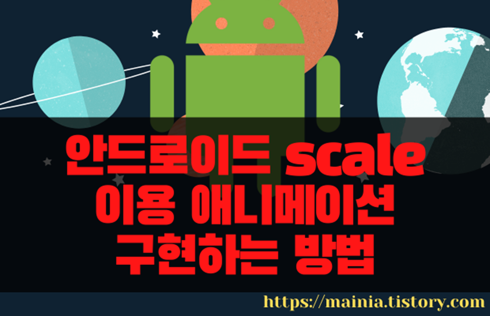이전 포스팅에서는 안드로이드에서 제공하는 translate 요소를 이용해 애니메이션 효과를 구현해 봤습니다. 이번에는 scale 요소를 사용해서 이미지를 확대/축소 시키거나 서서히 작아지면서 사라지게 하는 액션을 구현해 보겠습니다. 구현한 결과를 동영상으로 찍어서 올렸습니다. 참고하세요.