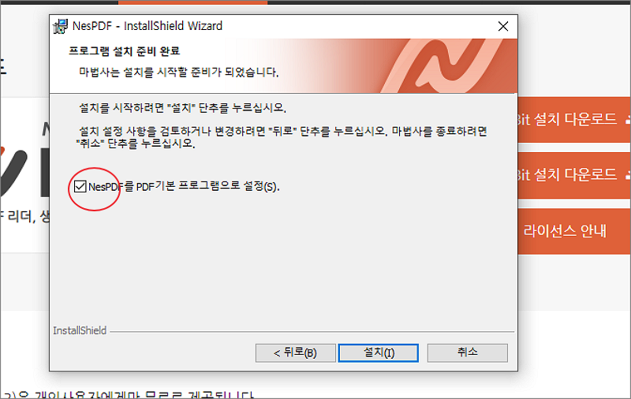 ▼ 설치 과정에서 다른 애드온이나 무료 보안 백신 설치 여부를 묻지 않습니다. 단지, NesPDF 를 윈도우 기본 PDF 프로그램으로 설정할 것인지를 묻는 화면이 나타납니다.