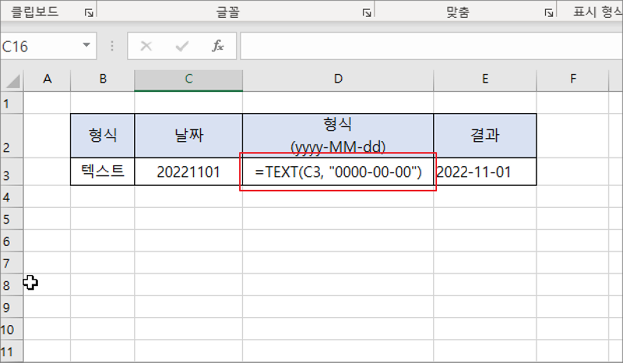 ▼ 날짜를 표현한 텍스트가 20220129 같은 경우 대시(-) 를 넣어서 2022-01-29 로 변경하는 방법입니다. 사용할 함수는 TEXT 입니다.