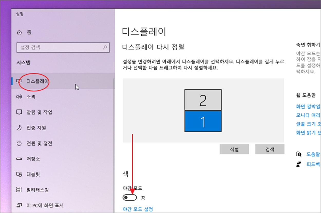 ▼ 설정 > 디스플레이 설정 화면에서 아래로 내려갑니다.