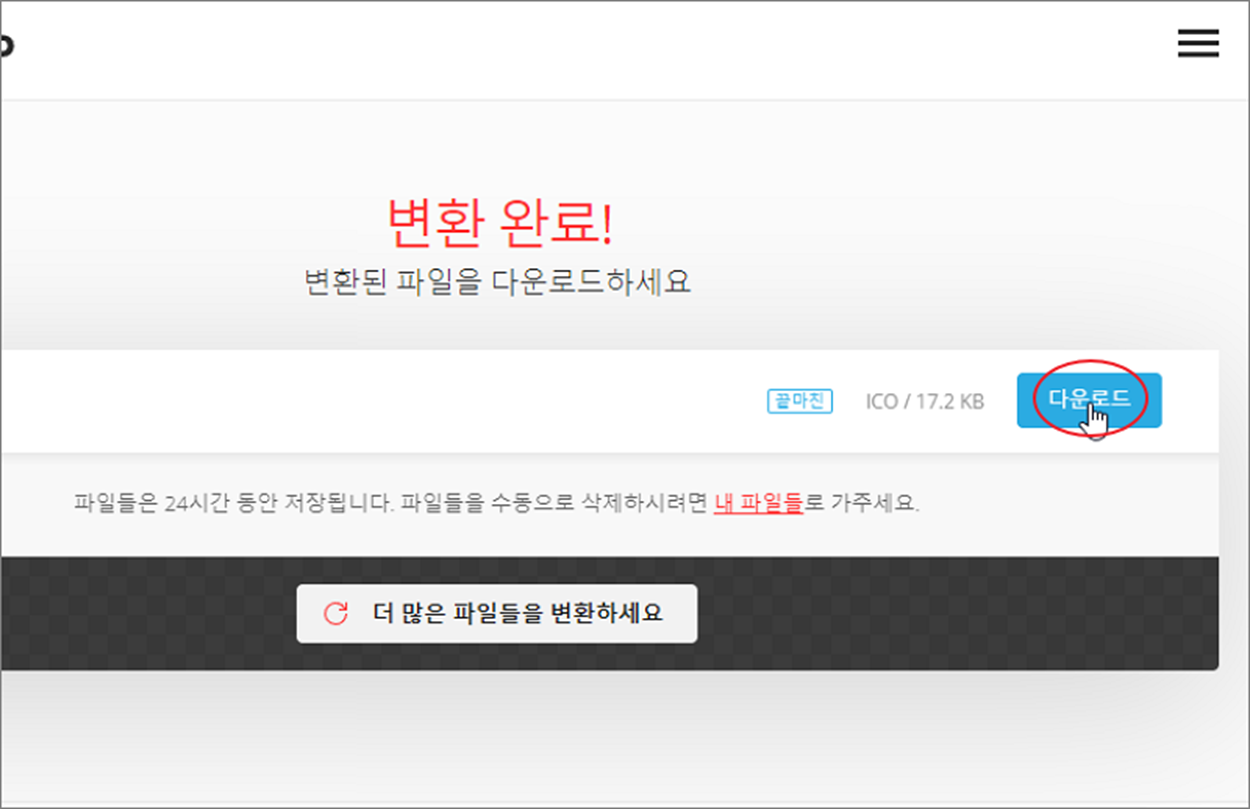 ▼ 변환한 ICO 파일을 확인할 수 있습니다. 2개 이상의 파일을 한번에 변환하는 경우 ZIP 파일로 다운받을 수 있습니다.