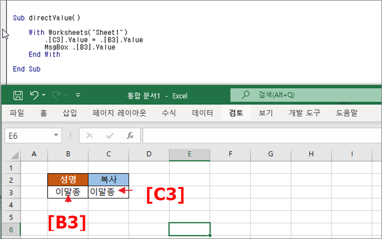 ▼ 함수를 실행한 결과는 다음과 같습니다. B3 의 셀 값을 가져와서 C3 셀에 붙여 넣었습니다.