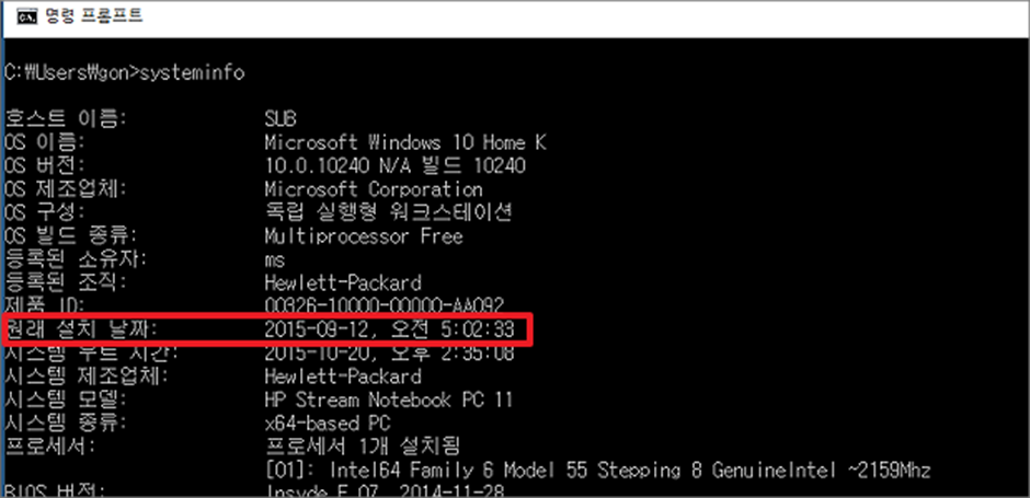 | ¤ systeminfo 를 이용한 설치 날짜 확인하기 |