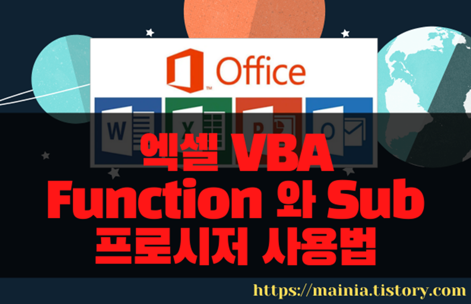 VBA 프로그램을 하기 위해서 먼저 숙지해야 될 개념 중에 하나는 함수 만드는 방법입니다. 함수는 두 가지 종류의 Function 과 Sub 지시어를 사용해서 만듭니다. Function 과 Sub 동일하게 함수로 사용되지만 차이점이 있습니다. 결과 값을 반환하면 Function 이며, 반환하지 않으면 Sub 가 됩니다. 좀더 상세한 내용은 예제를 통해 알아 보도록 하겠습니다.